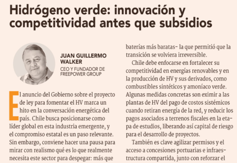 Columna de Juan Guillermo Walker, CEO y fundador de FreePower Group para el Diario Financiero.